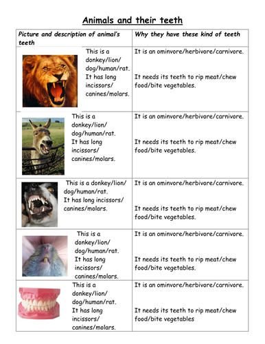 Free Maths worksheets and English worksheets. Teeth are found in our mouths - we use them to help us eat. Teeth are an incredibly useful tool for many animals.