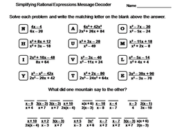 Simplifying Rational Expressions Worksheet: Math Message ...