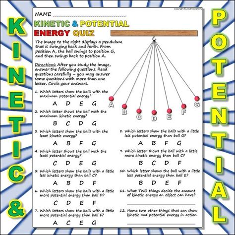 The provided lesson plan gives your steps for walking students through the activity Students worksheet involves mixing and matching the different illustrations to the type of energy that is being displayed. Potential energy: energy of position B. Remember, kinetic energy is the energy of motion and potential energy is stored energy due to an object's shape or position.