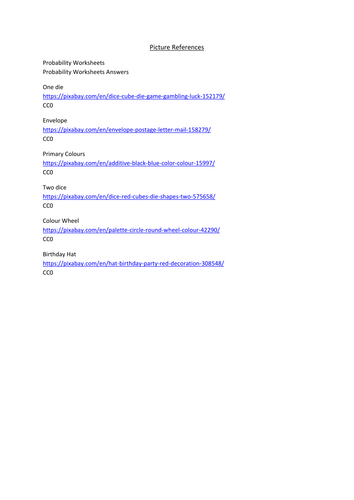 Worksheets cover the following probability topics: introduction to probability, spin the wheel and guess the odds, picking balls at random and tell the odds.