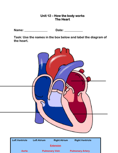 This simple human heart diagram could be used as both a starter or plenary in order to assess students. You'll find them on the Poetry Activities page under the heading "Worksheets." The structure of the heart. It pumps this to your lungs, where it picks up a fresh supply of oxygen.