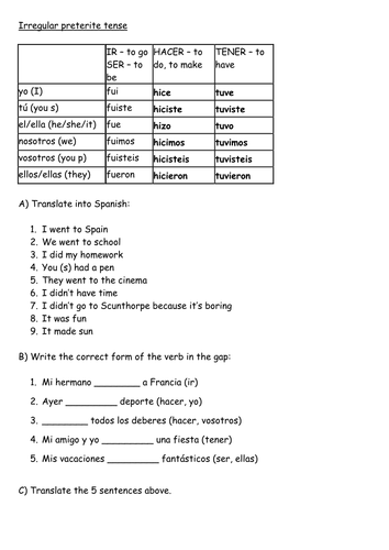 12 Best Images of Spanish Past Tense Irregular Verbs ...