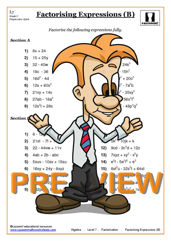 Factorising Gcse Worksheet. This section shows you how to factorise and includes. You can & download or print using the browser document.
